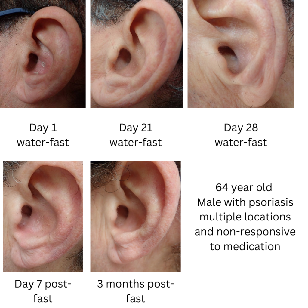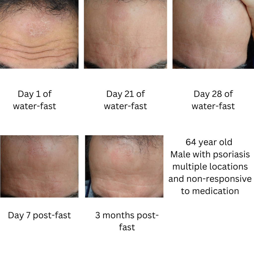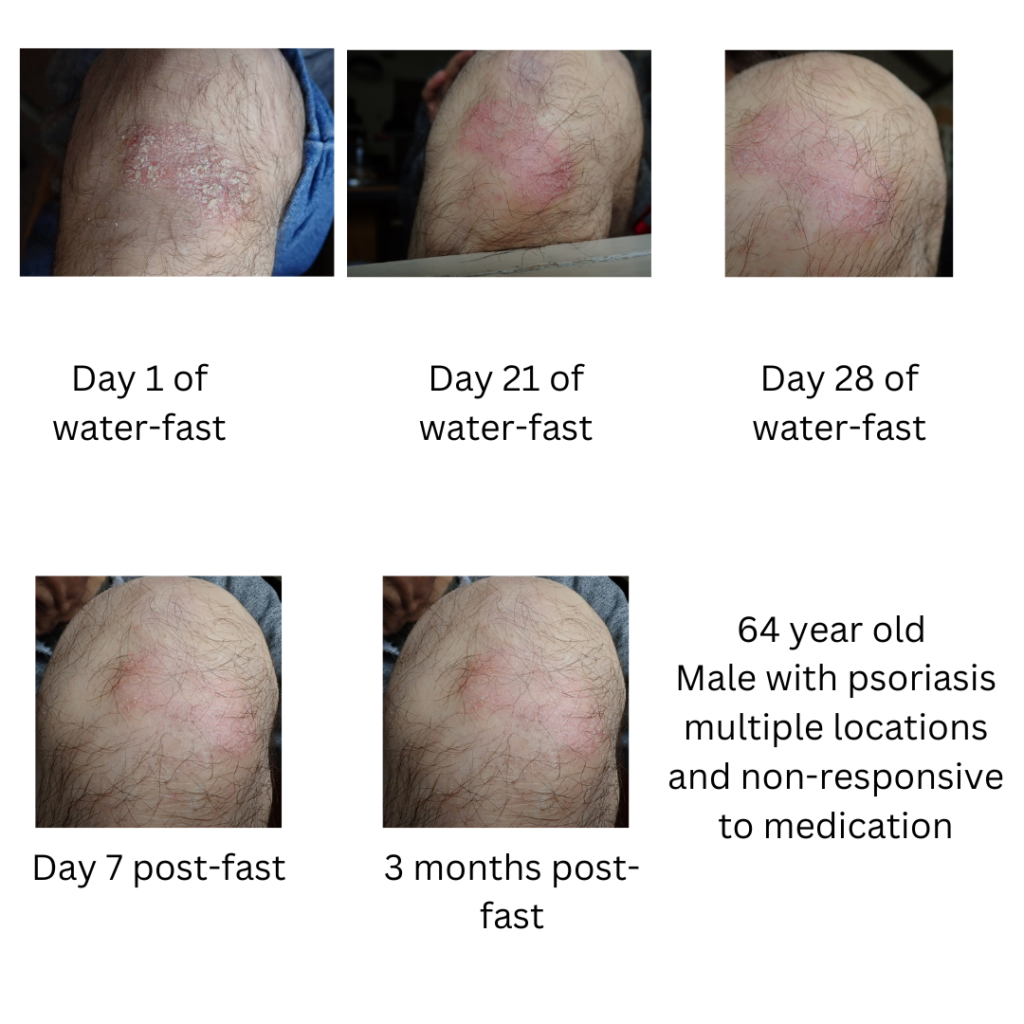 Extended water fasting involves abstaining from all food and consuming only water for an extended period, sometimes a few days or as long as a few weeks while under complete rest and doctor supervision. While fasting has been practiced for thousands of years for spiritual purposes, it has gained recent attention for its potential therapeutic benefits, including its ability to reduce inflammation, promote detoxification, and reset the immune system. For individuals with psoriasis, an autoimmune condition characterized by excessive skin cell turnover and inflammation, fasting may help target the root causes of the disease, leading to significant improvements in both the severity of symptoms and overall skin health.